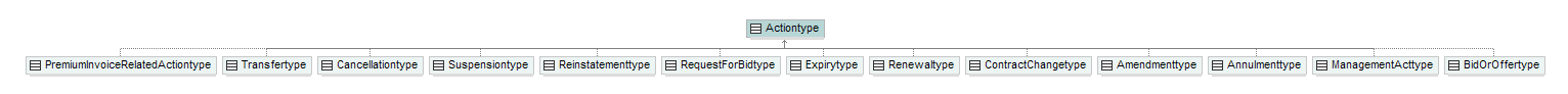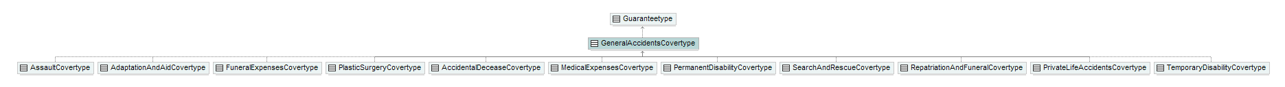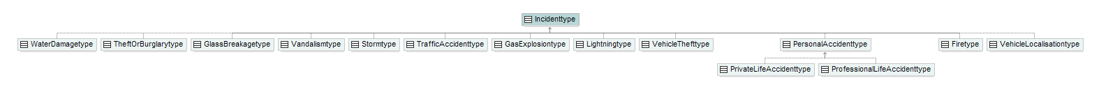 | ownedMember | AbbreviatedNametype ABIPolicyIdentifiertype ABSAvailabilityMannerCodetype AccelerationSpeedMeasuretype AcceptanceDerogationTypeCodetype AcceptingBeneficiaryTypeCodetype AccessoriesReplacementCostAmounttype AccessoriesTransferCostAmounttype Accessoriestype AccidentalDeceaseCovertype AccidentCauseTexttype AccidentGravityLevelCodetype AccidentNotificationJointlySignedIndicatortype AccidentOccurredInBelgiumIndicatortype AccidentPersonIdentifiertype AccidentPreventionProceedingTexttype AccidentPreventionProceedingTypeCodetype AccidentRegisterBIdentifiertype AccidentsInsuranceTypeCodetype AccidentsSinceAdjustmentCounttype AccidentsSinceAdjustmenttype AccidentTreatmentPhaseCodetype AccidentTypeCodetype AccountingDatetype AccountingDocumentCurrencyCodetype AccountingDocumentLineContractIdentifiertype AccountingDocumentLinetype AccountingDocumenttype AcquisitionCommissionTotalAmounttype AcquisitionCommissiontype ActionDateAndTimetype ActionDescriptionTexttype ActionEffectiveDatetype Actiontype ActivityExecutionAddresstype ActivityExecutionLocationTexttype Activitytype ActivityTypeTexttype ActualIndextype ActualInsurerOftype ActualValuetype AdaptationAndAidCovertype AdditionalActivitytype AdditionalInsuredValueAmounttype AdditionalOccupationtype AdditionalSeatsCounttype AdditionalSubmissionAdresseeIdentificationCodetype AdditionalSubmissionOrRelatedDocumenttype AdditionalSubmissionSendingCodetype AdditionalSubmissionTotalCounttype AdditionsValueTotalAmounttype AddOnInsurertype AddressExtensiontype AddressIdentifiertype AddressLanguageCodetype Addresstype AdministrationCostAmounttype AdministrativeChangeOnlyIndicatortype AdministrativeRefusalIndicatortype ADRNumbertype AdvanceAmounttype AdvantageInKindReceptionDeclarationtype AdvantageInKindtype AdvantageInKindTypeCodetype AffinityGroupIdentifiertype AffinityGroupTypeCodetype AgeLimitExcessIndicatortype AgeOfVehicleBasedDiscountPercentagetype AggravatedTheftRiskVehicleIndicatortype AgreedSubrogationIndicatortype AirVehicletype AlarmAcknowledgementTypeCodetype AllDriversOverReferenceAgeIndicatortype AmbulatoryMedicalExpensesCovertype AmendmentDatetype AmendmentEffectiveDatetype AmendmentIdentifiertype AmendmentReasonCodetype AmendmentReasonTexttype AmendmentSubIdentifiertype Amendmenttype AmendmentTypeCodetype AmountArithmeticSignCodetype AmountLevelCodetype AmountPaidAdditionAmounttype AmountPaidDeductionAmounttype AmountPaidTypeCodetype AnimalAcquisitionDatetype AnimalGenderCodetype AnimalNameTexttype AnimalRegistrationIdentifiertype AnimalsCounttype Animaltype AnimalTypeCodetype AnnualIndemnificationtype AnnualPremiumIndexedtype AnnualPremiumNonIndexedtype AnnualPremiumtype AnnulmentDatetype AnnulmentReasonCodetype Annulmenttype AntennaPresenceIndicatortype AnticipationBonusPercentagetype AnticipationBonusTypeCodetype ApartmentsCounttype ApartmentsIndicatortype AssaultCovertype AssessmentCategoryCodetype AssessmentClosingDatetype AssessmentDatetype AssessmentExpensesGuaranteetype AssessmentFeeQuotationTypeCodetype AssessmentFeeTransferIndicatortype AssessmentFinalizedIndicatortype AssessmentFirstValueAmounttype AssessmentIdentifiertype AssessmentLocationCodetype AssessmentLocationTexttype AssessmentRelatedDocumentSenderTypeCodetype AssessmentRelatedDocumentsToBeDeliveredCodetype AssessmentReportContentsCodetype AssessmentReportCurrencyCodetype AssessmentReportReceptionDatetype AssessmentRequestLastUpdateDatetype AssessmentRequestOriginCodetype AssessmentRequestSentDatetype AssessmentResultTypeCodetype AssessmentRisedByCodetype AssessmentSecondValueAmounttype Assessmenttype AssessmentTypeCodetype AssessorAcknowledgementIdentifiertype AssessorAppointedIndicatortype AssessorAppointmentTypeCodetype AssessorFirstInterventionDatetype AssessorRegionCodetype Assessortype AssessorTypeCodetype AssignedAssessmentTypeCodetype AttacksAndTerrorismGuaranteetype AttacksAndWorkConflictsGuaranteetype AudatexAssemblySchemeIdentifiertype AudatexBlocTexttype AudatexCalculationIndicatortype AudatexCalculationsCounttype AutomaticForfeitizationIndicatortype AVCValueInclusiveCatalogueValueIndicatortype AverageConsumptionQuantitytype AverageMileagePerYearCounttype AviationLicenceLossCovertype BackLeftTyreProfileMeasuretype BackRightTyreProfileMeasuretype BadShapeIndicatortype BalanceOverdueAmounttype BankruptcyDatetype BasePremiumtype BcssKszEntryDatetype BedroomsCounttype Beneficiarytype BeneficiaryTypeCodetype Bicycletype BidAmounttype BidDisqualifiedIndicatortype BidOrOfferCommunicationTexttype BidOrOffertype BidPeriodStartDatetype BidRequestExpiredIndicatortype BidRequestIdentifiertype BidRequestNotificationDatetype BidRequestValidityEndDatetype BidRequestWithdrawnIndicatortype BillingAddresstype BirthDatetype BirthPlaceCodetype BirthPlaceTexttype BodilyInjuryValueAmounttype BondOrStocktype BonusReceptionDeclarationtype BonusSalaryAmounttype Bonustype BonusTypeCodetype BonusWagesPaymentFrequencyCodetype booleantype BordereauLinePremiumInvoiceIdentifiertype BordereauLineRenewalMainDatetype BordereauLinetype BordereauTotalLinetype Bordereautype BoxNumberIdentifiertype BranchOfficeAddresstype BranchSenioritytype BRBOperationCodetype BreedTexttype BrokerAccountIdentifiertype BrokerAdministrationCostAmounttype BrokerAdministrationCostPercentagetype BrokerClaimIdentifiertype BrokerIsActiveIndicatortype BrokerIsPartnerIndicatortype BrokerPolicyIdentifiertype BrokerProcurationApplicationIndicatortype BuildingAdoptedCapitalAmounttype BuildingConstructionMaterialTypeCodetype BuildingHolderCategoryCodetype BuildingHolderRunsBusinessIndicatortype BuildingHoldertype Buildingtype BuildingUnderConstructionIndicatortype BureauxCounttype BurglaryDamagesGuaranteetype BurglaryMannerCodetype BurglaryOrThefttype BurnsGuaranteetype Calculationtype CancellationDatetype CancellationNoticeDeliveryIndicatortype CancellationNotifiedToPreviousInsurerIndicatortype CancellationOriginCodetype CancellationReasonCodetype CancellationStatusCodetype Cancellationtype Capitaltype CapitalT