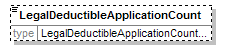 | source | <xsd:element name="LegalDeductibleApplicationCount" type="LegalDeductibleApplicationCounttype" minOccurs="0"/> |