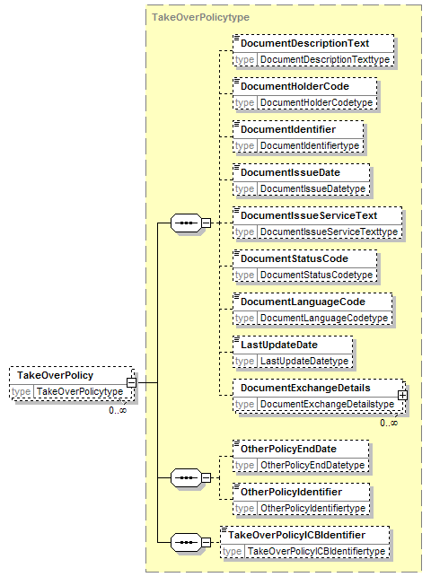 | children | DocumentDescriptionText DocumentHolderCode DocumentIdentifier DocumentIssueDate DocumentIssueServiceText DocumentStatusCode DocumentLanguageCode LastUpdateDate DocumentExchangeDetails OtherPolicyEndDate OtherPolicyIdentifier TakeOverPolicyICBIdentifier | ||||||||