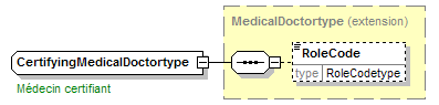 | source | <xsd:complexType name="CertifyingMedicalDoctortype"> <xsd:annotation> <xsd:appinfo source="tb2Semantics">The medical doctor providing evidence for a disease or bodily injury by means of a certificate.</xsd:appinfo> <xsd:appinfo source="tb2Edifact">(PTY+041)</xsd:appinfo> <xsd:documentation source="BusinessTerm" xml:lang="fr">Médecin certifiant</xsd:documentation> <xsd:documentation source="BusinessTerm" xml:lang="nl">Certifiërende geneesheer</xsd:documentation> <xsd:documentation source="BusinessTerm" xml:lang="ge">Beglaubigende Artz</xsd:documentation> <xsd:documentation source="BusinessTerm" xml:lang="en">Certifying medical doctor</xsd:documentation> <xsd:documentation source="BusinessDefinition" xml:lang="fr">Identifie un intervenant, le médecin certifiant.</xsd:documentation> <xsd:documentation source="BusinessDefinition" xml:lang="nl">Identificeert een betrokkene, de certifiërende geneesheer.</xsd:documentation> <xsd:documentation source="BusinessDefinition" xml:lang="en">Party - The medical doctor providing evidence for a disease or bodily injury by means of a certificate.</xsd:documentation> </xsd:annotation> <xsd:complexContent> <xsd:extension base="MedicalDoctortype"/> </xsd:complexContent> </xsd:complexType> |
