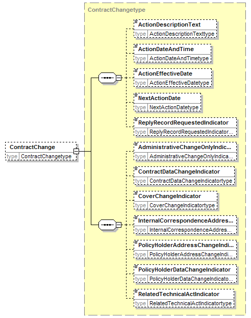 | children | ActionDescriptionText ActionDateAndTime ActionEffectiveDate NextActionDate ReplyRecordRequestedIndicator AdministrativeChangeOnlyIndicator ContractDataChangeIndicator CoverChangeIndicator InternalCorrespondenceAddressDeleteIndicator PolicyHolderAddressChangeIndicator PolicyHolderDataChangeIndicator RelatedTechnicalActIndicator | ||||||||