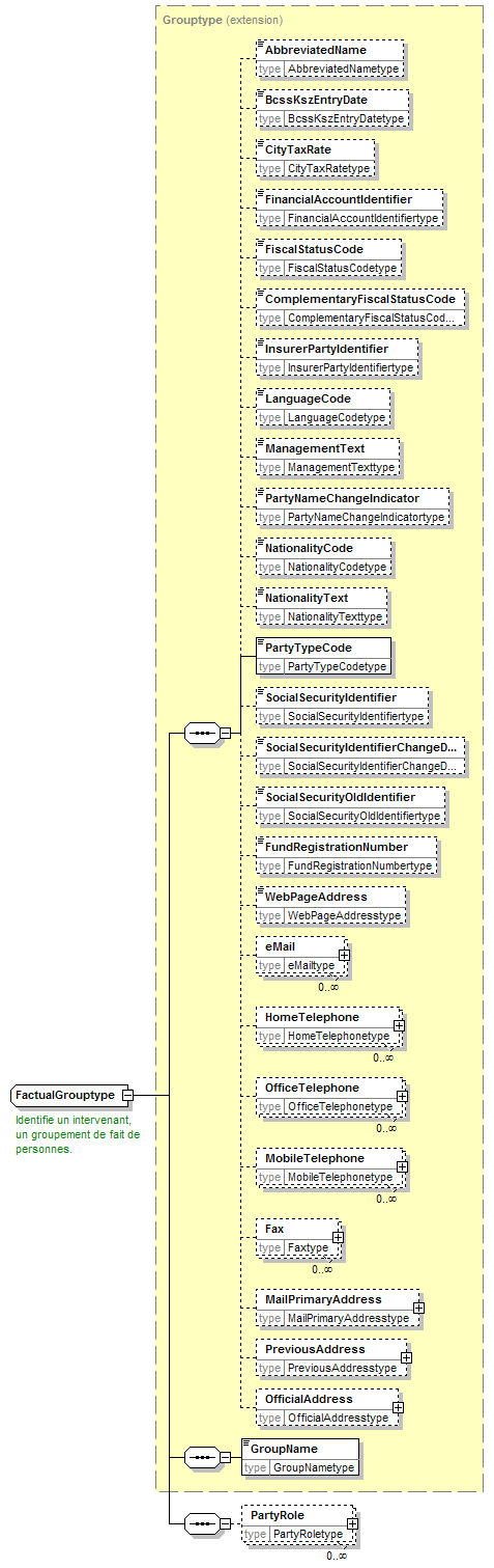 | children | AbbreviatedName BcssKszEntryDate CityTaxRate FinancialAccountIdentifier FiscalStatusCode ComplementaryFiscalStatusCode InsurerPartyIdentifier LanguageCode ManagementText PartyNameChangeIndicator NationalityCode NationalityText PartyTypeCode SocialSecurityIdentifier SocialSecurityIdentifierChangeDate SocialSecurityOldIdentifier FundRegistrationNumber WebPageAddress eMail HomeTelephone OfficeTelephone MobileTelephone Fax MailPrimaryAddress PreviousAddress OfficialAddress GroupName PartyRole | ||||||||||||||||