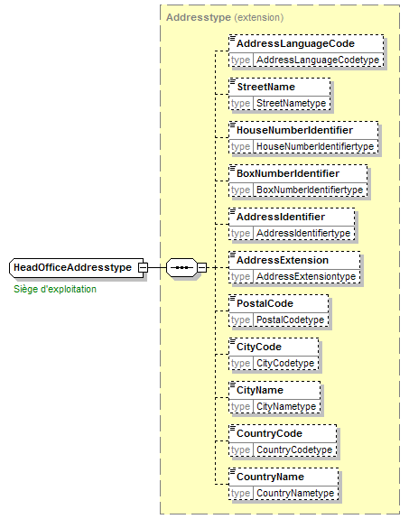| children | AddressLanguageCode StreetName HouseNumberIdentifier BoxNumberIdentifier AddressIdentifier AddressExtension PostalCode CityCode CityName CountryCode CountryName | ||||||||||||||||||
