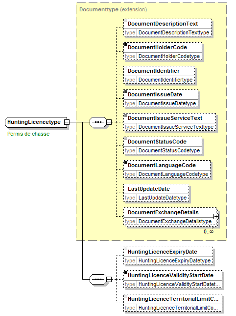 | children | DocumentDescriptionText DocumentHolderCode DocumentIdentifier DocumentIssueDate DocumentIssueServiceText DocumentStatusCode DocumentLanguageCode LastUpdateDate DocumentExchangeDetails HuntingLicenceExpiryDate HuntingLicenceValidityStartDate HuntingLicenceTerritorialLimitCode | ||||||||||||||||||