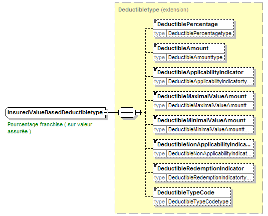 | children | DeductiblePercentage DeductibleAmount DeductibleApplicabilityIndicator DeductibleMaximalValueAmount DeductibleMinimalValueAmount DeductibleNonApplicabilityIndicator DeductibleRedemptionIndicator DeductibleTypeCode | ||||||||||||||||||