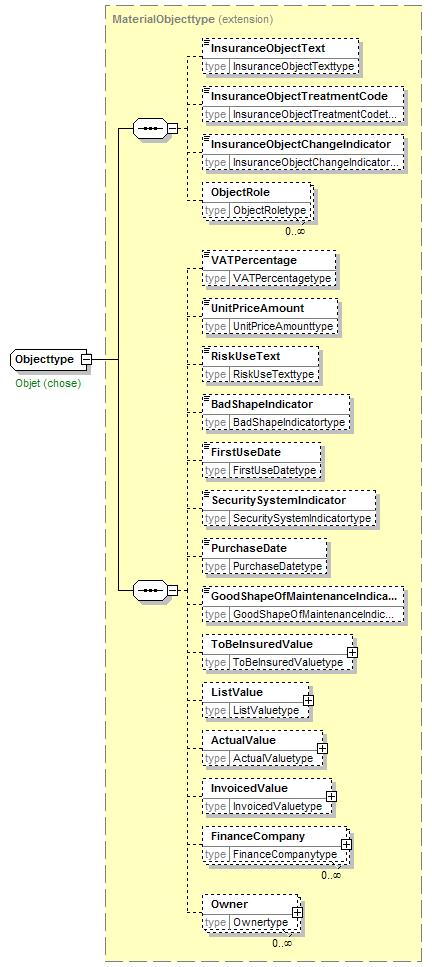 | children | InsuranceObjectText InsuranceObjectTreatmentCode InsuranceObjectChangeIndicator ObjectRole VATPercentage UnitPriceAmount RiskUseText BadShapeIndicator FirstUseDate SecuritySystemIndicator PurchaseDate GoodShapeOfMaintenanceIndicator ToBeInsuredValue ListValue ActualValue InvoicedValue FinanceCompany Owner | ||||||||||||||||