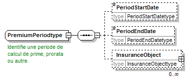 | source | <xsd:complexType name="PremiumPeriodtype"> <xsd:annotation> <xsd:appinfo source="tb2Semantics">A time period for premium calculation, delimited by a start date and an end date.</xsd:appinfo> <xsd:appinfo source="tb2Edifact">(PER)</xsd:appinfo> <xsd:documentation source="BusinessDefinition" xml:lang="fr">Identifie une periode de calcul de prime, prorata ou autre.</xsd:documentation> <xsd:documentation source="BusinessDefinition" xml:lang="nl">Identificeert een premie-berekenings-periode, prorata of andere.</xsd:documentation> <xsd:documentation source="BusinessDefinition" xml:lang="en">Period - A time period for premium calculation, delimited by a start date and an end date.</xsd:documentation> <xsd:documentation source="BusinessTerm" xml:lang="en">Premium period</xsd:documentation> <xsd:documentation source="BusinessTerm" xml:lang="nl">Premie periode</xsd:documentation> <xsd:documentation source="BusinessTerm" xml:lang="fr">Période prime</xsd:documentation> </xsd:annotation> <xsd:sequence> <xsd:element name="PeriodStartDate" type="PeriodStartDatetype" minOccurs="0"/> <xsd:element name="PeriodEndDate" type="PeriodEndDatetype" minOccurs="0"/> <xsd:element name="InsuranceObject" type="InsuranceObjecttype" minOccurs="0" maxOccurs="unbounded"/> </xsd:sequence> </xsd:complexType> |