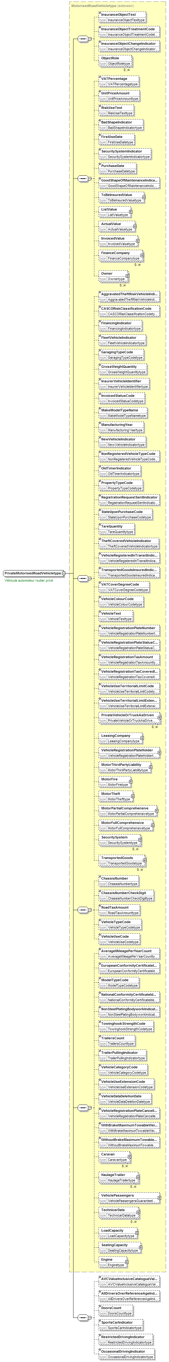 | children | InsuranceObjectText InsuranceObjectTreatmentCode InsuranceObjectChangeIndicator ObjectRole VATPercentage UnitPriceAmount RiskUseText BadShapeIndicator FirstUseDate SecuritySystemIndicator PurchaseDate GoodShapeOfMaintenanceIndicator ToBeInsuredValue ListValue ActualValue InvoicedValue FinanceCompany Owner AggravatedTheftRiskVehicleIndicator CASCORiskClassificationCode FinancingIndicator FleetVehicleIndicator GaragingTypeCode GrossWeightQuantity InsurerVehicleIdentifier InvoicedStatusCode MakeModelTypeName ManufacturingYear NewVehicleIndicator NonRegisteredVehicleTypeCode OldTimerIndicator PropertyTypeCode RegistrationRequestSentIndicator StateUponPurchaseCode TareQuantity TheftCoveredVehicleIndicator VehicleRegisteredInTransitIndicator TransportedGoodsInsuredIndicator VATCoverDegreeCode VehicleColourCode VehicleText VehicleRegistrationPlateNumber VehicleRegistrationPlateStatusCode VehicleRegistrationTaxAmount VehicleRegistrationTaxCoveredIndicator VehicleUseTerritorialLimitCode VehicleUseTerritorialLimitExtensionCode PrivateVehicleOrTruckAsDriven LeasingCompany VehicleRegistrationPlateHolder MotorThirdPartyLiability MotorFire MotorTheft MotorPartialComprehensive MotorFullComprehensive SecuritySystem TransportedGoods ChassisNumber ChassisNumberCheckDigit RoadTaxAmount VehicleTypeCode VehicleUseCode AverageMileagePerYearCount EuropeanConformityCertificateIdentifier ModelTypeCode NationalConformityCertificateIdentifier NonSteelPlatingBodyworkIndicator TowinghookStrengthCode TrailersCount TrailerPullingIndicator VehicleCategoryCode VehicleUseExtensionCode VehicleDataDeletionDate VehicleRegistrationPlateCancelledDate WithBrakeMaximumTowableWeightMeasure WithoutBrakeMaximumTowableWeightMeasure Caravan HaulageTrailer VehiclePassengers TechnicarData LoadCapacity SeatingCapacity Engine AVCValueInclusiveCatalogueValueIndicator AllDriversOverReferenceAgeIndicator DoorsCount SportsCarIndicator RestrictedDrivingIndicator OccasionalDrivingIndicator | ||||||||||||||||||