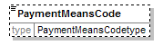| source | <xsd:element name="PaymentMeansCode" type="PaymentMeansCodetype" minOccurs="0"/> |