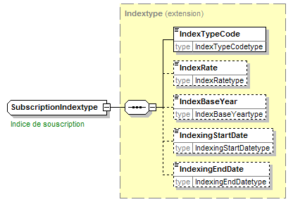| source | <xsd:complexType name="SubscriptionIndextype"> <xsd:annotation> <xsd:appinfo source="tb2Semantics">The index at the time of subscription, underwriting of the contract.</xsd:appinfo> <xsd:appinfo source="tb2Edifact">(IND+001)</xsd:appinfo> <xsd:documentation source="BusinessTerm" xml:lang="fr">Indice de souscription</xsd:documentation> <xsd:documentation source="BusinessTerm" xml:lang="nl">Onderschrijvingsindex</xsd:documentation> <xsd:documentation source="BusinessTerm" xml:lang="ge">Unterzeichnungsindex</xsd:documentation> <xsd:documentation source="BusinessTerm" xml:lang="en">Subscription index</xsd:documentation> <xsd:documentation source="BusinessDefinition" xml:lang="fr">Contient un indice.</xsd:documentation> <xsd:documentation source="BusinessDefinition" xml:lang="nl">Bevat een index.</xsd:documentation> <xsd:documentation source="BusinessDefinition" xml:lang="en">Index</xsd:documentation> </xsd:annotation> <xsd:complexContent> <xsd:extension base="Indextype"/> </xsd:complexContent> </xsd:complexType> |