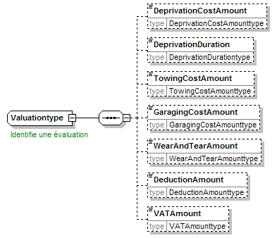 | source | <xsd:complexType name="Valuationtype"> <xsd:annotation> <xsd:appinfo source="tb2Semantics">Estimated or calculated worth, appraisal of the value of something.</xsd:appinfo> <xsd:appinfo source="tb2Edifact">(VAL)</xsd:appinfo> <xsd:documentation source="BusinessDefinition" xml:lang="fr">Identifie une évaluation</xsd:documentation> <xsd:documentation source="BusinessDefinition" xml:lang="nl">Identificeert een evaluatie</xsd:documentation> <xsd:documentation source="BusinessDefinition" xml:lang="en">Valuation - Estimated or calculated worth, appraisal of the value of something.</xsd:documentation> <xsd:documentation source="BusinessTerm" xml:lang="en">Valuation</xsd:documentation> <xsd:documentation source="BusinessTerm" xml:lang="nl">Taxatie, schatting</xsd:documentation> <xsd:documentation source="BusinessTerm" xml:lang="fr">Estimation, expertise</xsd:documentation> </xsd:annotation> <xsd:sequence> <xsd:element name="DeprivationCostAmount" type="DeprivationCostAmounttype" minOccurs="0"/> <xsd:element name="DeprivationDuration" type="DeprivationDurationtype" minOccurs="0"/> <xsd:element name="TowingCostAmount" type="TowingCostAmounttype" minOccurs="0"/> <xsd:element name="GaragingCostAmount" type="GaragingCostAmounttype" minOccurs="0"/> <xsd:element name="WearAndTearAmount" type="WearAndTearAmounttype" minOccurs="0"/> <xsd:element name="DeductionAmount" type="DeductionAmounttype" minOccurs="0"/> <xsd:element name="VATAmount" type="VATAmounttype" minOccurs="0"/> </xsd:sequence> </xsd:complexType> |