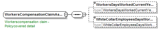 | source | <xsd:complexType name="WorkersCompensationClaimAsPolicyHeldtype"> <xsd:annotation> <xsd:appinfo source="tb2Semantics">Worker's compensation claim policyholder relationship data. (20.06.2007 : former relationtype changed to entitytype)</xsd:appinfo> <xsd:documentation source="BusinessTerm" xml:lang="en">Workerscompensation claim - Policycovered detail</xsd:documentation> <xsd:documentation source="BusinessTerm" xml:lang="nl">Arbeidsongeval - detail verzekerdzijn</xsd:documentation> <xsd:documentation source="BusinessTerm" xml:lang="fr">Accident du travail - détail contrat couvrant</xsd:documentation> </xsd:annotation> <xsd:sequence> <xsd:element name="WorkersDaysWorkedCurrentYearCount" type="WorkersDaysWorkedCurrentYearCounttype" minOccurs="0"/> <xsd:element name="WhiteCollarEmployeesDaysWorkedCurrentYearCount" type="WhiteCollarEmployeesDaysWorkedCurrentYearCounttype" minOccurs="0"/> </xsd:sequence> </xsd:complexType> |