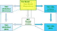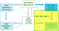 You can take a look at the Telebib2-UN/Edifact MIG's, and see how they are connected to the MCI's : . Again, ROD06007 is a first fully elaborated example... Let's agree on this view being oriented much more to the technical people, and much less to the business people. We are now ready to start deriving messaging in some other syntax... (This view is based on the contents of some tables from the TB2Model.mdb file.) |