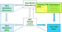From the model are being derived (by automated functionality) 3 XML schemes : - Entities.xsd - Codelists.xsd - BasicTypes.xsd These 3 schemes are at the core of our "Namespace" : - "http://www.telebib2.org/Namespace/2008/Entities" - "http://www.telebib2.org/Namespace/2008/Codelists" (download the schemafile) - "http://www.telebib2.org/Namespace/2008/BasicTypes" (download the schemafile) And we continued developing a "Namespace 2009" (Entities, Codelists, BasicTypes). And we continued developing a "Namespace 2010" (Entities, Codelists, BasicTypes). And we are currently working on a "Namespace 2011" (Entities, DataTypes, Codelists, BasicTypes). |
